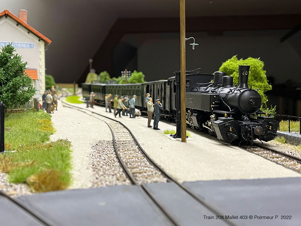 -service 208: Le Cheylard - Dunière; St Julien à 11h 26, train voyageur machine Mallet 403