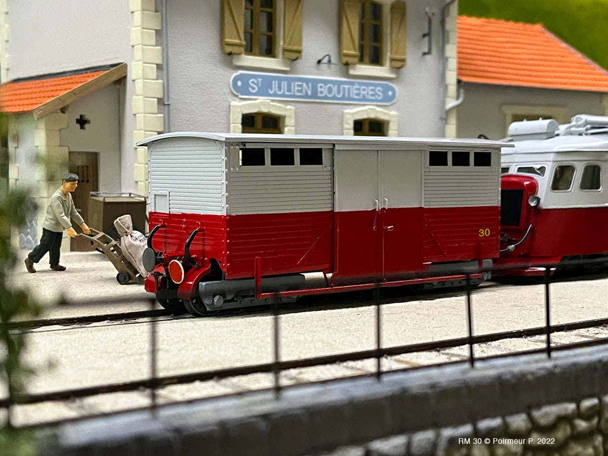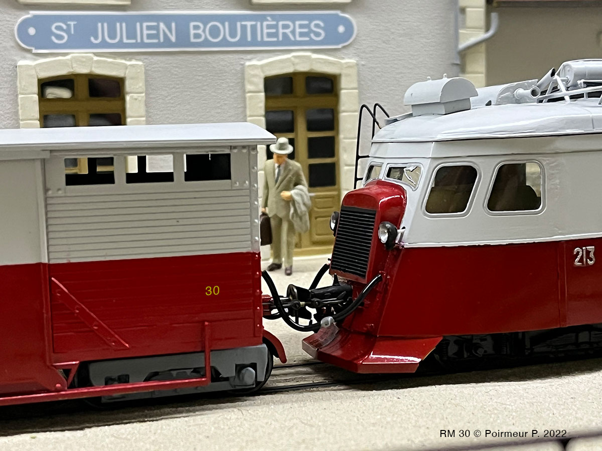 quelques remarques à propos de la RM 30 (différente de celle d'Yvan); c'est un kit "Interfer" fortement modifié, pour représenter le numéro 30 qui possède des boggies mécanosoudés et dans la version années 60 tel que la photographiée J. H. Manara sur le plateau Vellave derrière le Billard 212.