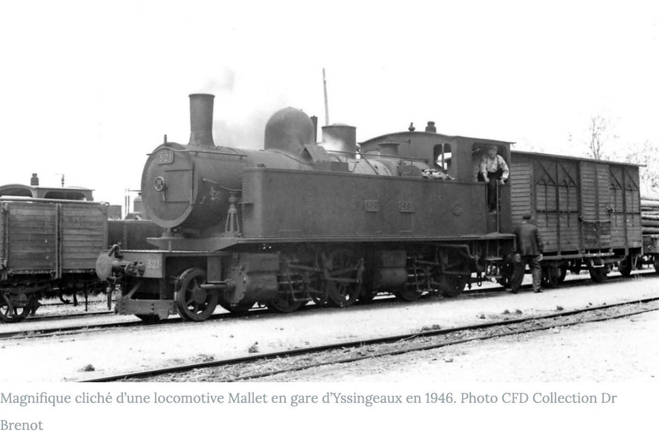 La compagnie CFD a commandé à la SACM 5 machines série 320, type 120+020; les 3 premières machines ont été livrées au Cheylard en août 1908; ces machines de plus faible puissance que les machines série 400, ont été utilisées sur les parcours Lavoulte sur Rhône - Le Cheylard, et sur Lavoûte sur Loire - Dunière. Peu de photos de ces machines sur le Vivarais; seule photo de cette machine, prise en gare d'Yssingeaux en 1946; elle est affublée d'un chasse pierres provenant certainement d'une des 2 130 Fives Lille détruite lors du bombardement du Cheylard en juillet 1944. La 321 en provenance de la ligne de la Loire, "descend" sur Le Cheylard pour une RG. C'est la seule machine de cette série a avoir accompli tout sont service sur le Vivarais (hormis son séjour sur le Meusien pour la 1ére GM)