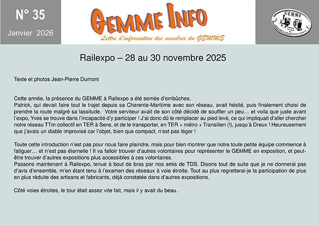 La lettre d’info n°35 consacrée à Railexpo est téléchargeable sur le site à la page https://www.gemme.org/gazette-lettre-dinfo/